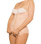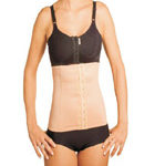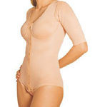 Modelador com colchetes frontais, com mangas. Indicação: pós-cirurgias abdominais, lipoaspiração abdominal, dorso e braços.