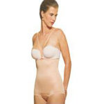 Cinta abdominal com costas, sem sutiã, com barbatanas. Indicação: lipoaspiração de abdômen e dorso.