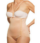 Cinta abdominal com colchetes frontais e alças destacáveis. Indicação: pós-cirurgias abdominais, pós-parto.