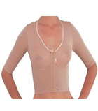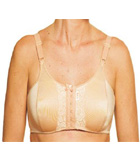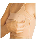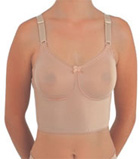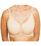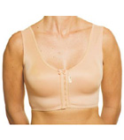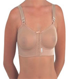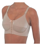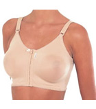 Sutiã com fechamento frontal, base reforçada com costura nos bojos. Indicação: pós-mamoplastia, sustentação dos seios na prática de esportes, uso diário.